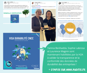 Cette certification de la H2A – Haute autorité de l’audit avec le Visa Durabilité de la Compagnie Nationale des Commissaires aux Comptes – CNCC renforce nos compétences et notre engagement pour accompagner nos clients vers un avenir plus durable et responsable, avec une offre de services dédiés.
