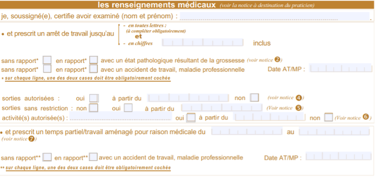 • un seul « CERFA » (S 3116i) pour l’arrêt de travail initial comme de prolongation, pour l’arrêt maladie, maternité, paternité, accident de travail ou maladie professionnelle ;