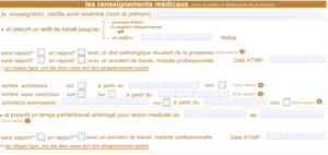 • l’ajout de nouvelles données  à savoir autorisation pour exercer une activité pendant son arrêt de travail et précision si le mi-temps thérapeutique est « en rapport ou non » avec un accident de travail, maladie professionnelle.