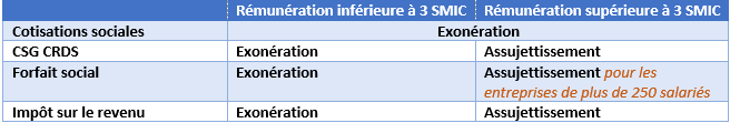 A compter du 1er janvier 2024, le régime d’exonération sera le même pour tous les salariés bénéficiaires : exonération de cotisations de sécurité sociale, assujettissement à CSG/CRDS, à l’impôt sur le revenu et au forfait social pour les entreprises d’au moins 250 salariés.